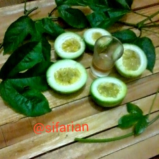 Bibit saya dapet minta dari orangtua saya di Purwakarta ( yang ini jangan ditanya juga alamat lengkapnya ntar kamu maen ke rumah lagi kan repot.. ) singkat cerita saya menanam buah markisa kuning ini berhasil dan berbuah banyak (alhamdulillah ya). Tapi maaf ya karena saya gak sabaran pengen cepet- cepet panen jadi buah markisanya warna ijo. Gapapalah itung - itung ngurangin buah biar sisa buahnya yang masih di pohon gede - gede (alesan..) Toh masih ijo atau udah mateng (kuning ) rasanya sama (sama - sama asem...pake banget)